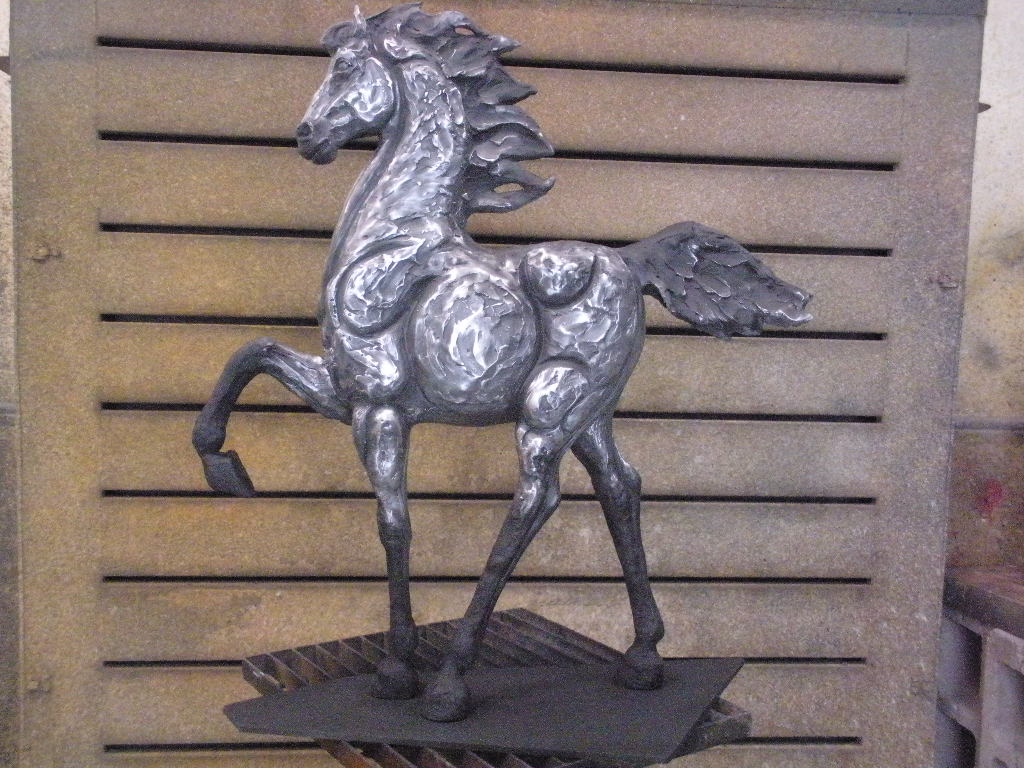 The aluminum is cast the same way as bronze with a lost wax shell, investment and pre-core. See pricing for details.